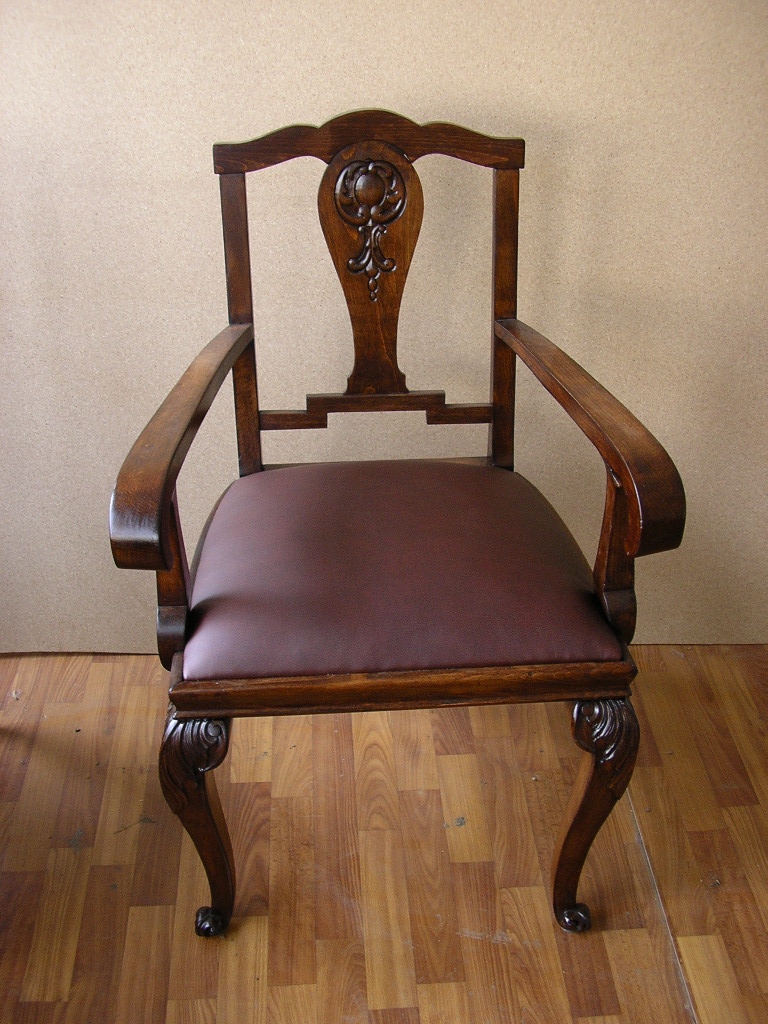 Реставрирано старинно кресло с тапицерия от кожа и основа от пружини
