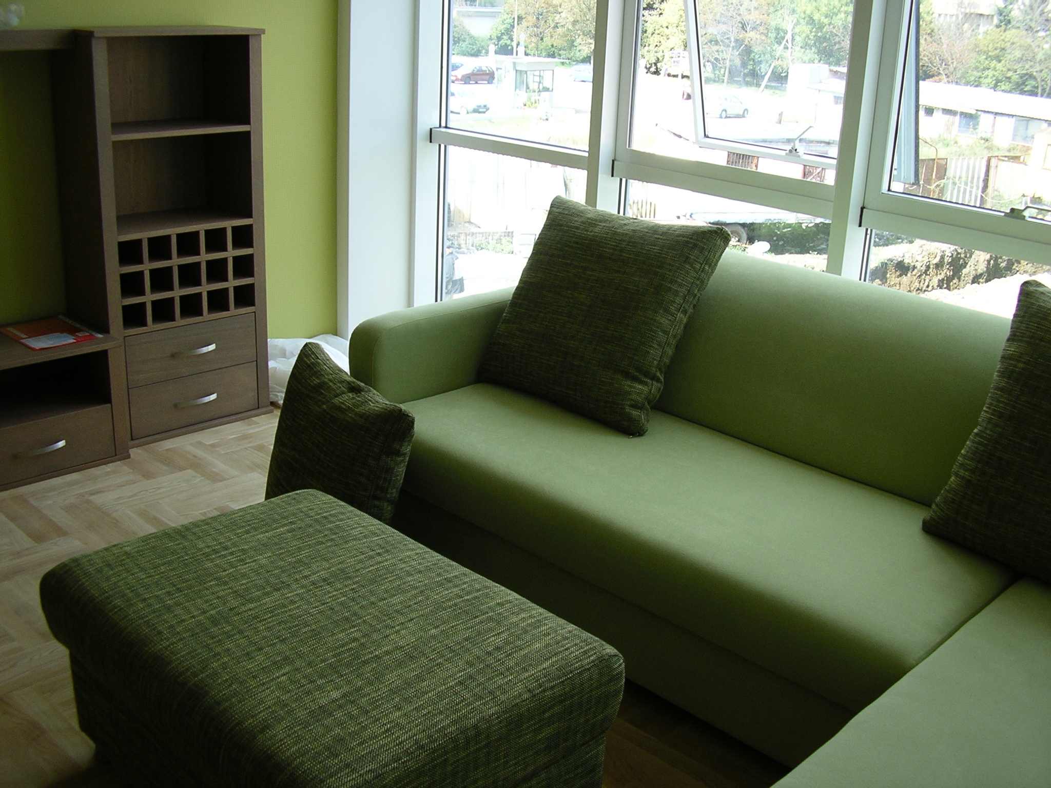 Мека мебел изработена по размери и модел на клиента-диван + лежанка + табуретка (с механизъм за разтягане и спане)