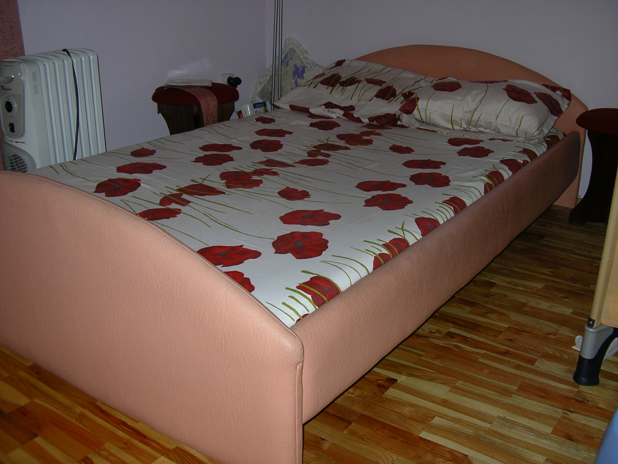 тапицирана спалня с изкуствена кожа и матрак изработен по поръчка