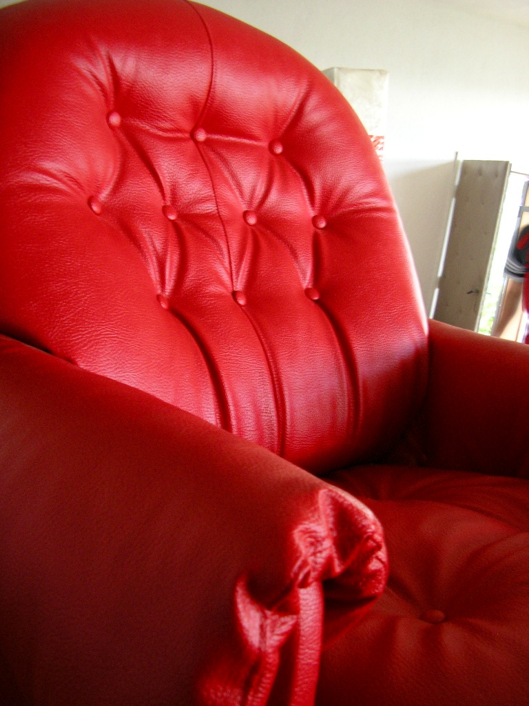 Претапициран кожен фотьойл с капитонаж(фигурно облицоване)